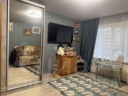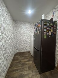 Не угловая. Квартира в обычном жилом состоянии, все окна пластиковые, лоджия застеклена, в двух комнатах и на кухне натяжной потолок. Требуется небольшой косметический ремонт в ванной. Есть кладовая, а также коридор, в котором можно оборудовать просторную гардеробную.