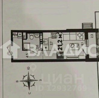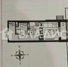 Общая площадь - 21,2 кв.м. (с учетом лоджии)