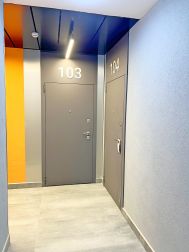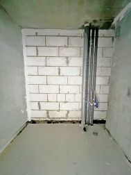 Квартира в отделке от застройщика, стены оштукатурены, сделана стяжка пола, установлена входная металлическая дверь, лучевая разводка отопления (частично подогретый пол), счетчики устанавливаются на воду, отопление и электричество.