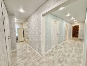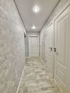 В квартире сделан свежий ремонт. Выравнены стены, полы, установлены пластиковые окна, натяжные потолки, напольное покрытие линолеум, установлены новые межкомнатные двери. После ремонта в квартире никто не проживал.