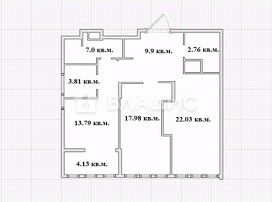 Общaя площадь с учетом лоджии - 81,4 кв.м.