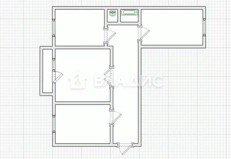 В квартире три изолированные комнаты с общей площадью 69 кв. м, включая жилую площадь 41,6 кв. м и просторную кухню 11 кв. м. Высота потолков 2,5 м создаёт ощущение пространства.