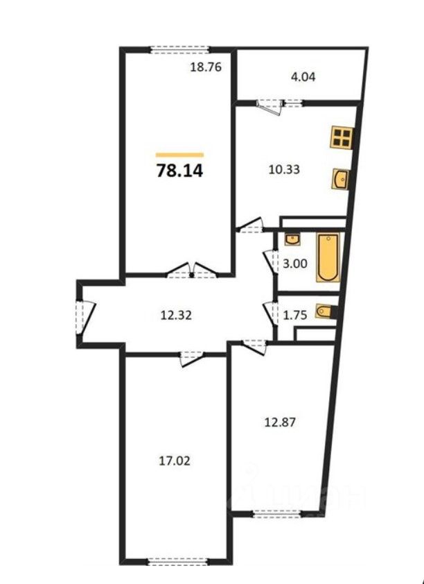 три просторные спальни 18,76 кв.м., 17,02 кв.м., 12,87 кв.м.