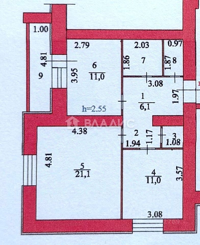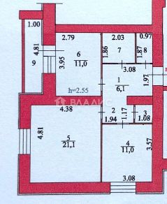 Общая площадь: 63 кв.м. ( с учётом лоджии) Большой зал: 21 кв.м, спальня: 11 кв.м.