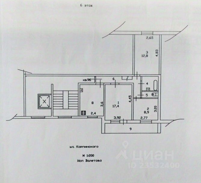 Комнаты изолированные - 17,4 кв.м., 12,8 кв.м. и 8,9 кв.м.