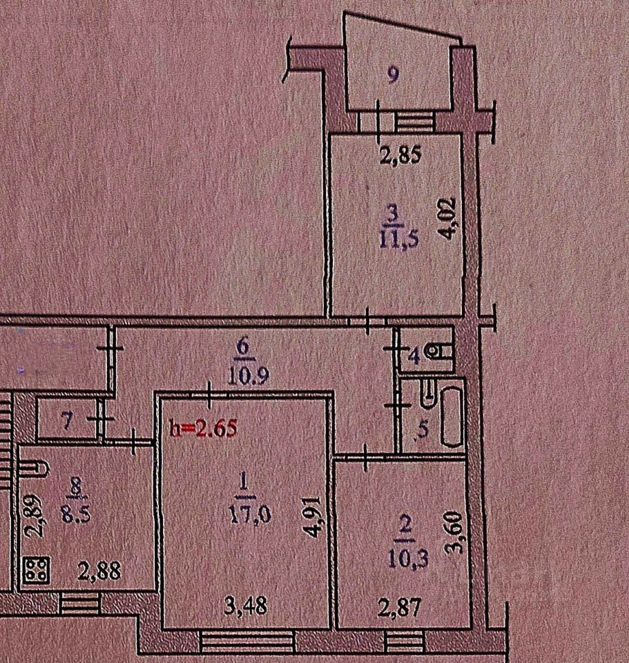 Квартира расположена на 9-м этаже 10 -ти этажного дома.