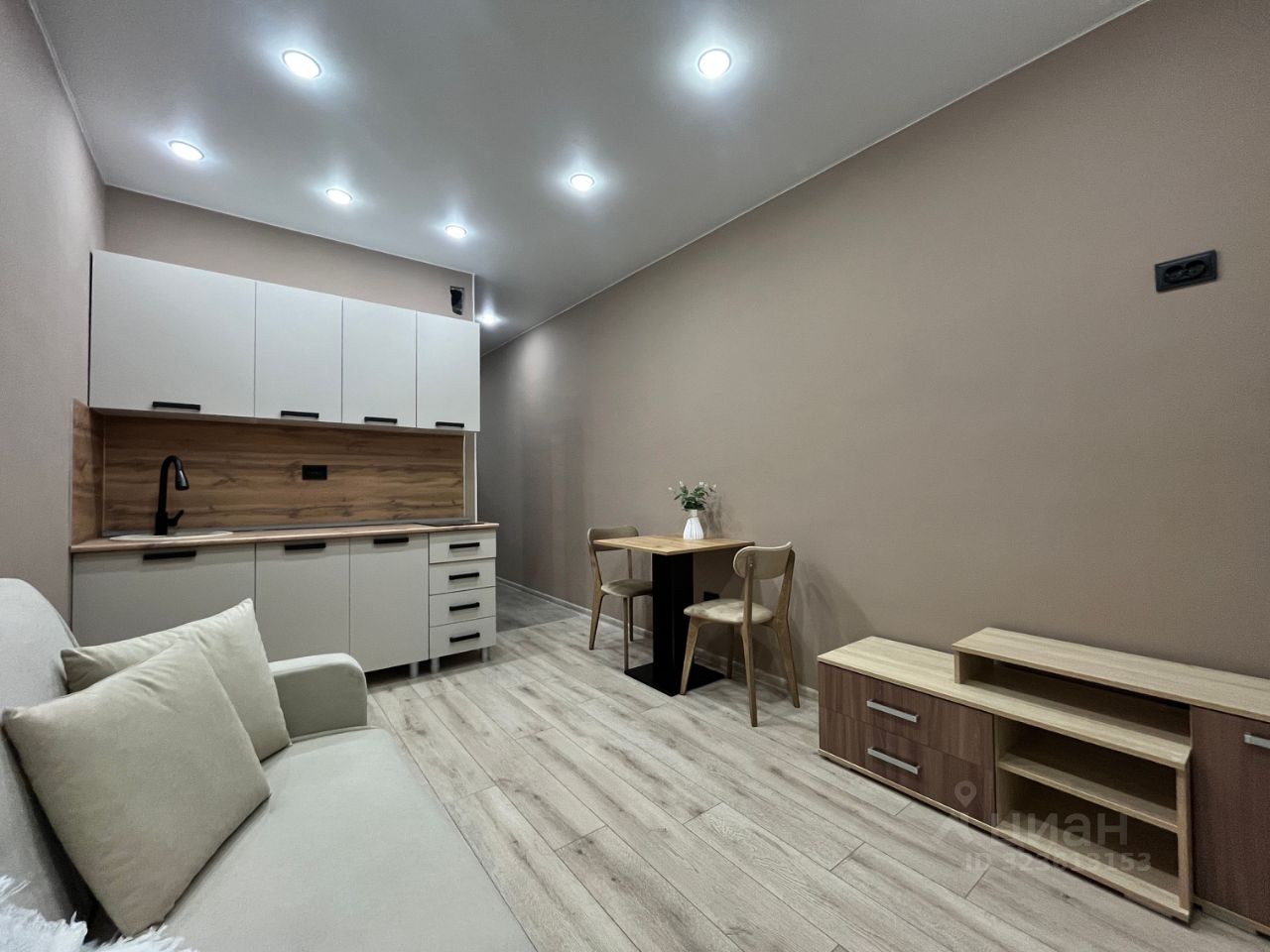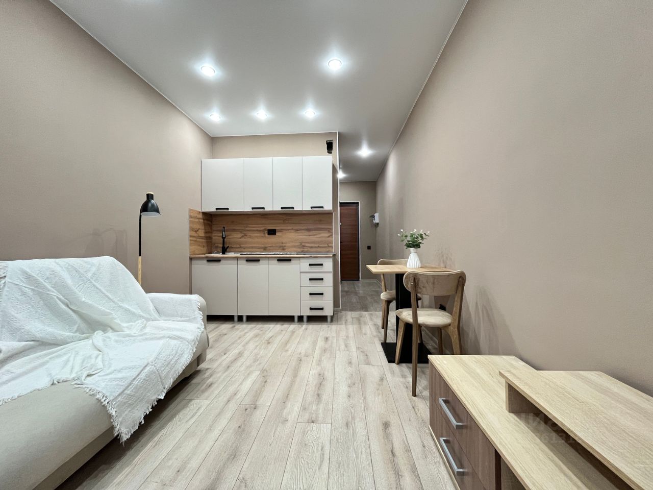 В ПОДАРОК кухонный гарнитур, варочная панель, вытяжка, обеденная группа, диван, тумба, текстиль (шторы, плед).