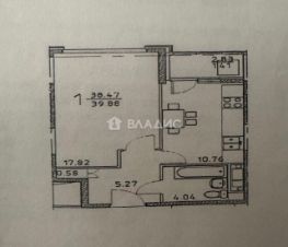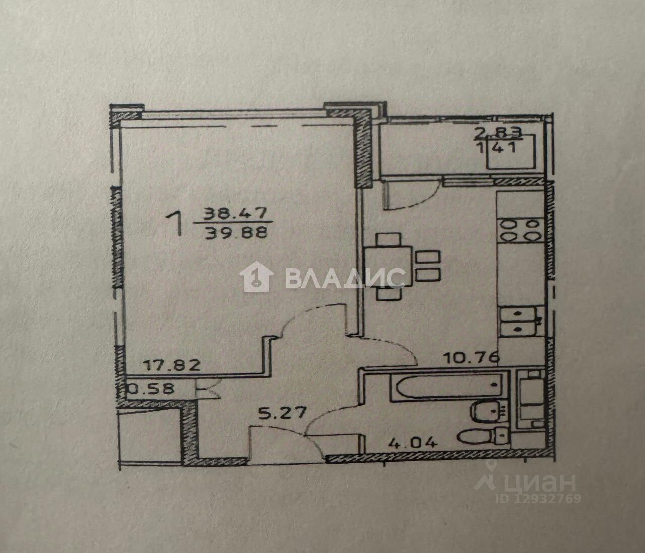 Общая площадь — 39,8 кв.м.