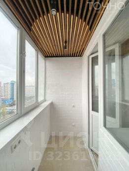 - стильный современный потолок из деревянных реек с точечным освещением на лоджии