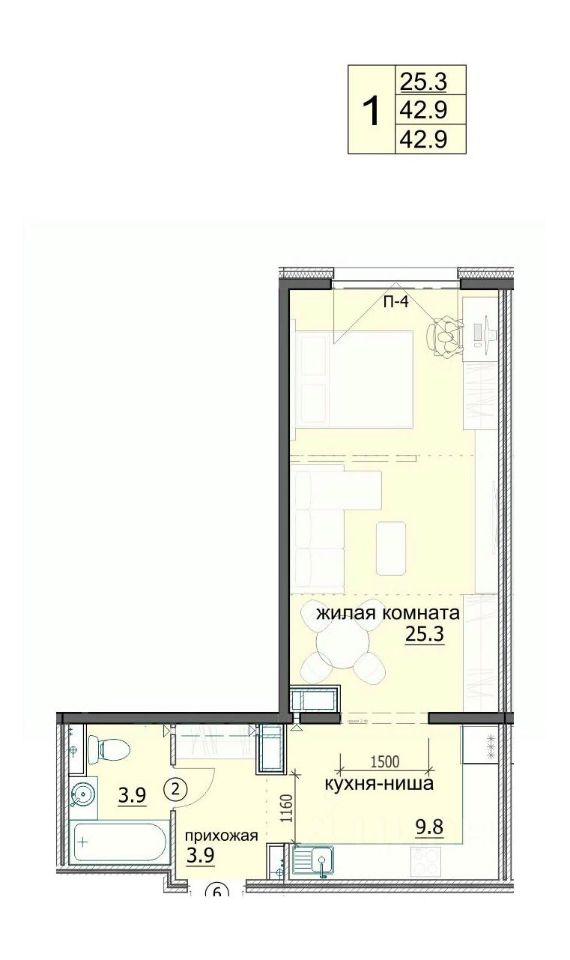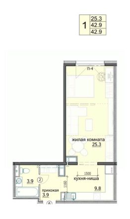 Продаётся 1-комнатная квартира в сданном доме (ул. Яшиной, 8), срок сдачи: IV-кв. 2022, общей площадью 42.9 кв.м., на 17 этаже. Дизайнерская отделка.