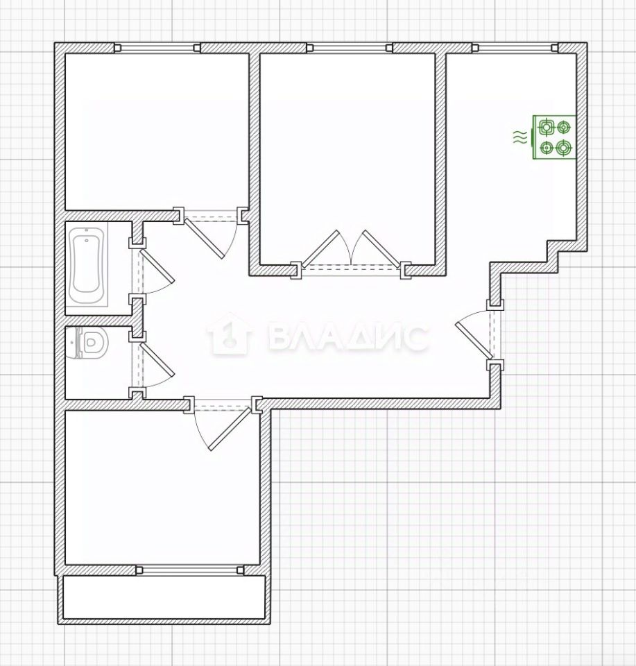 Общая площадь квартиры составляет 62,6 кв. м, из которых 38,6 кв. м — жилая площадь (16,9+11,3+10,4).