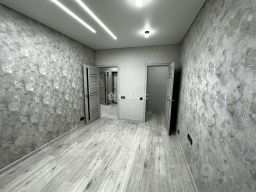 - Пол - произведена стяжка, покрытие в жилой комнате - высококачественный влагостойкий ламинат 34 класса фирмы "Tarkett", входная зона, кухня, лоджия - широкоформатный напольный керамогранит "KERAMA MARAZZI".