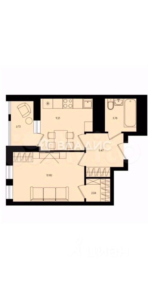 Общая площадь: 37.04 кв.м. ( с учетом лоджии )