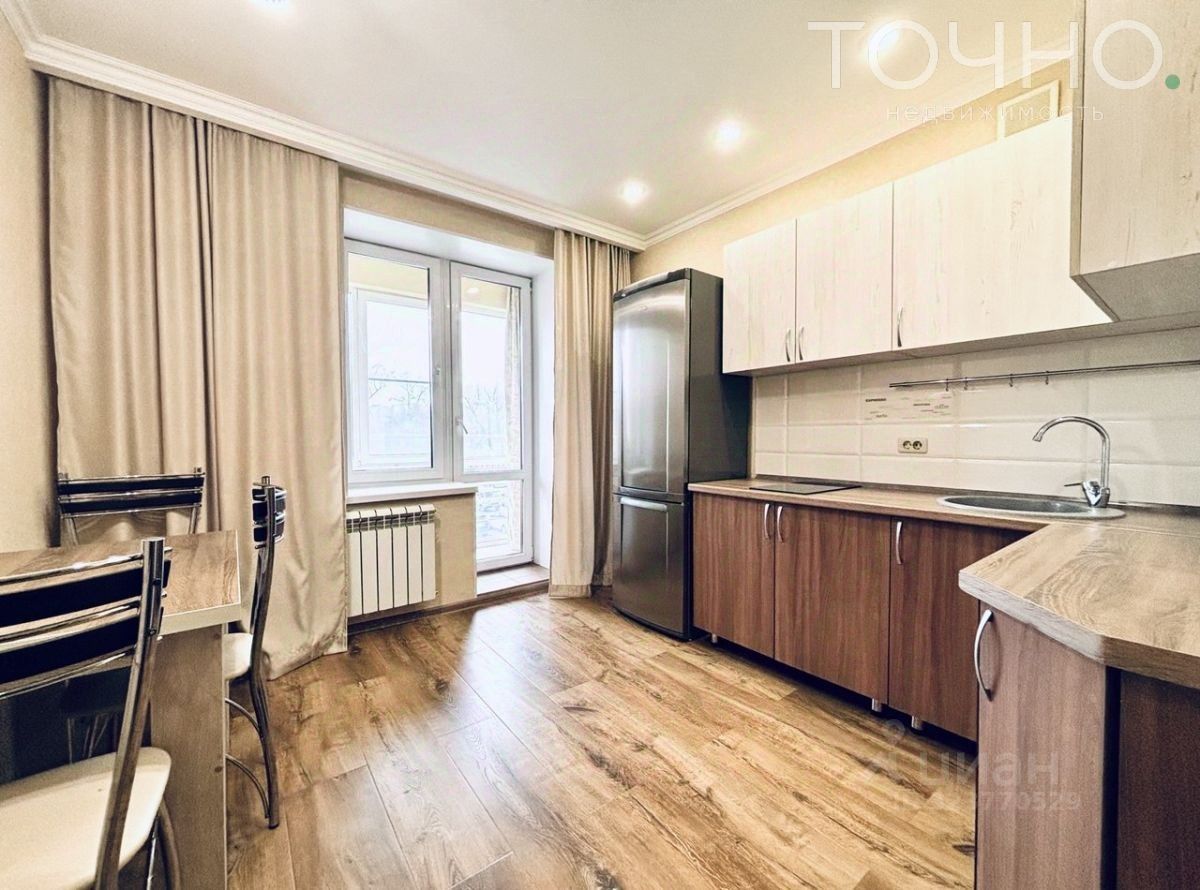 В квартире выполнен качественный ремонт. На полу лежит изностойкий ламинат, натяжные потолки, качественные межкомнатные двери. Большим плюсом является просторная комната. Из кухни выход на зacтeкленную лoджую. Санузел в плитке современного образца.