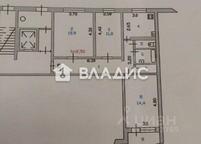 Общая площадь 67,4 кв. м, из которых 41,3 кв. м — жилая площадь.