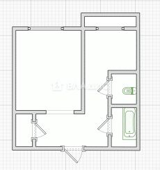 Общая площадь составляет 37 кв. м, из которых 14,1 кв. м — жилая площадь, 8,9 кв. м — кухня.