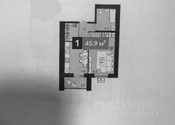 • Удобный санузел: 6,3 кв.м. — возможность установить стильную мебель и сантехнику.