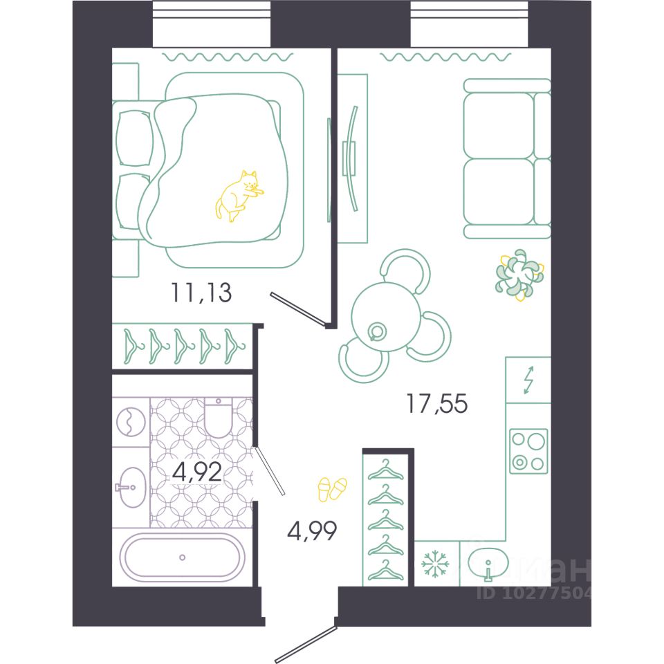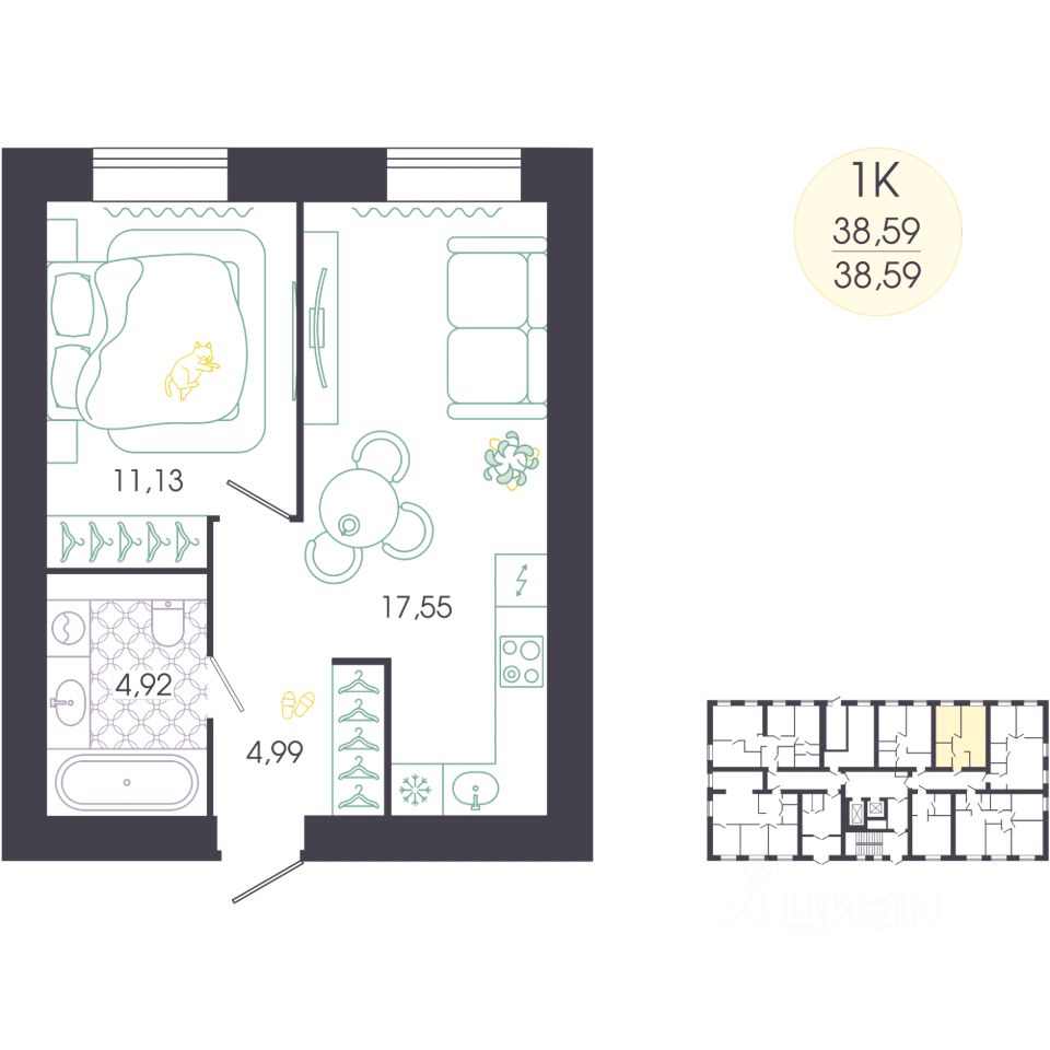 Продаётся 1-комнатная квартира в строящемся доме (Корпус 1), срок сдачи: IV-кв. 2027, общей площадью 38.59 кв.м., на 1 этаже. Новый жилой комплекс "Доброе" от застройщика "ГК Автор" расположен по адресу Россия, Пенза, Колышлейская улица, 7.