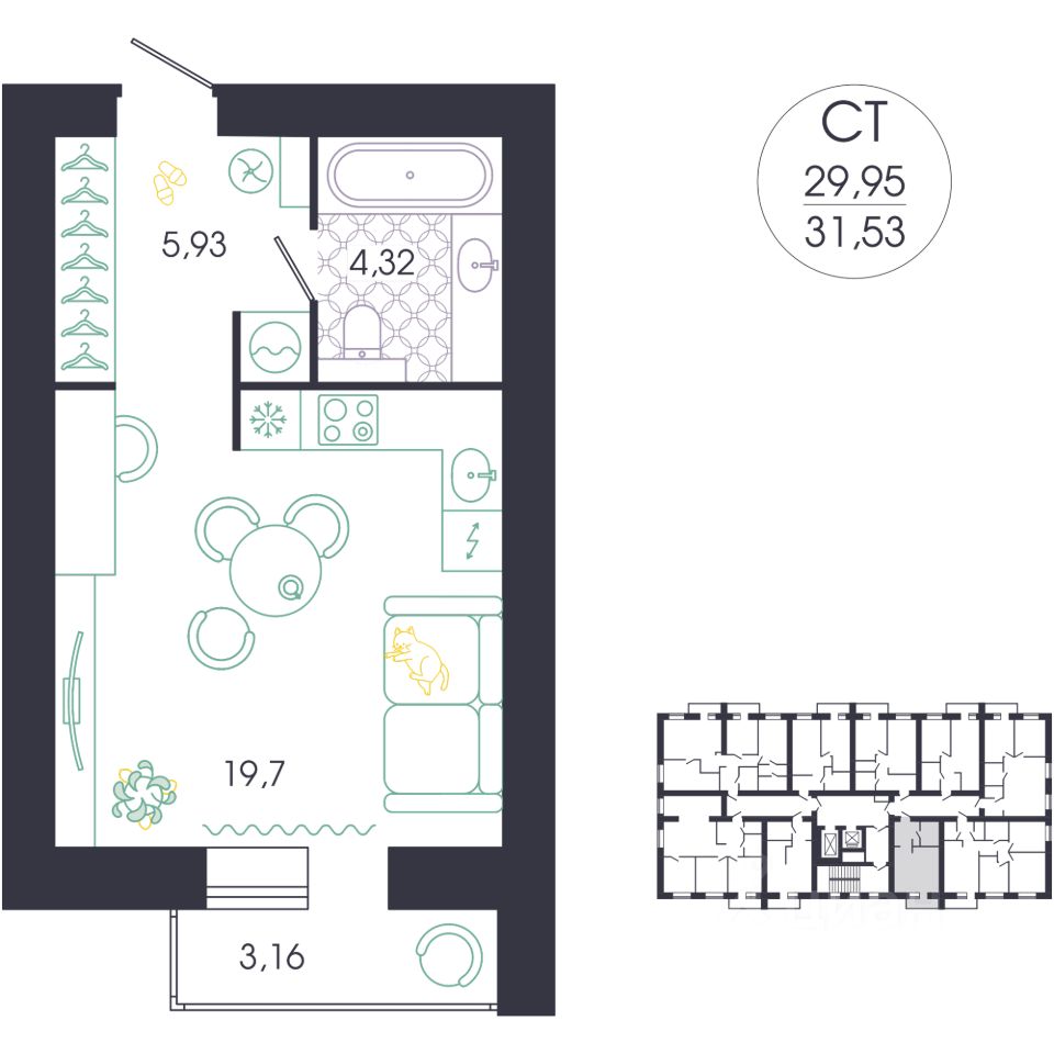 Продаётся студия в строящемся доме (Корпус 1), срок сдачи: IV-кв. 2027, общей площадью 31.53 кв.м., на 2 этаже. Новый жилой комплекс "Доброе" от застройщика "ГК Автор" расположен по адресу Россия, Пенза, Колышлейская улица, 7.