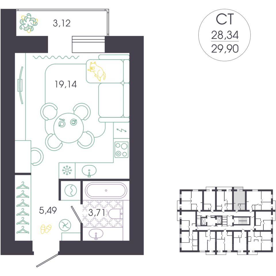Продаётся студия в строящемся доме (Корпус 1), срок сдачи: IV-кв. 2027, общей площадью 29.9 кв.м., на 8 этаже. Новый жилой комплекс "Доброе" от застройщика "ГК Автор" расположен по адресу Россия, Пенза, Колышлейская улица, 7.