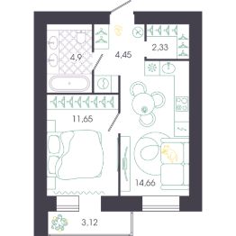 Жилая площадь11,7 м²