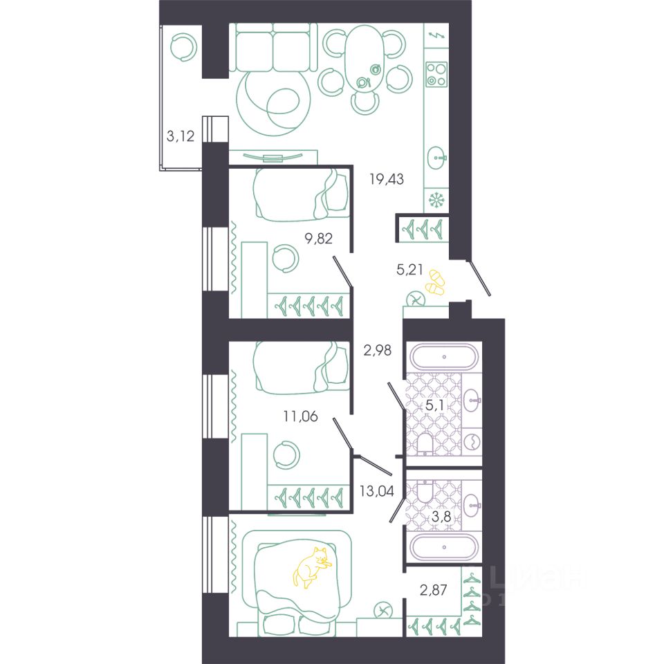 Продаётся 3-комнатная квартира в строящемся доме (Корпус 1), срок сдачи: IV-кв. 2027, общей площадью 77.41 кв.м., на 13 этаже. Новый жилой комплекс "Доброе" от застройщика "ГК Автор" расположен по адресу Россия, Пенза, Колышлейская улица, 7.