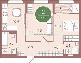 - Раздельные комнаты по 14,5 и 10,3 кв.м.