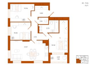 Продается 3-комн. квартира, 76,71 м²