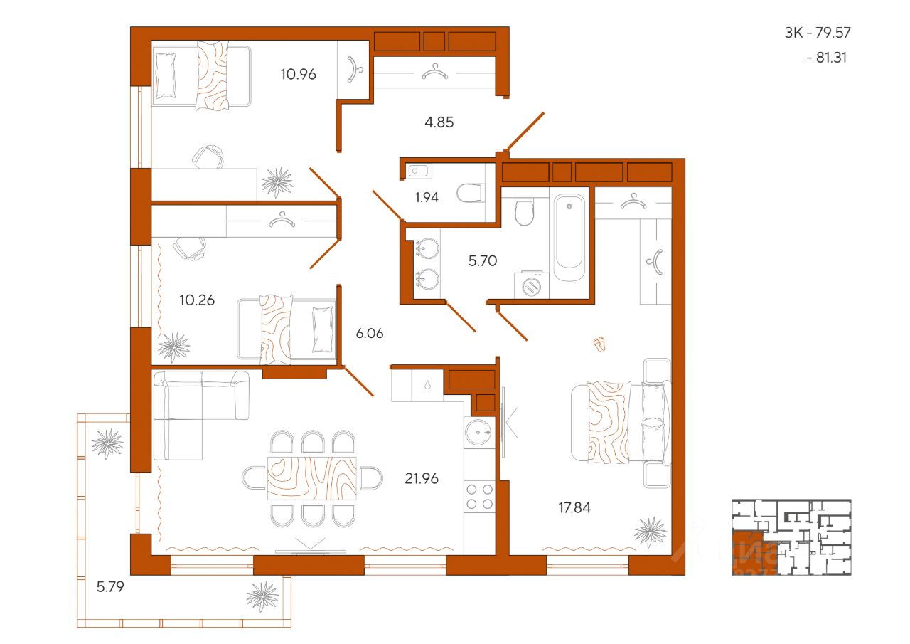 Общая площадь81,31 м²