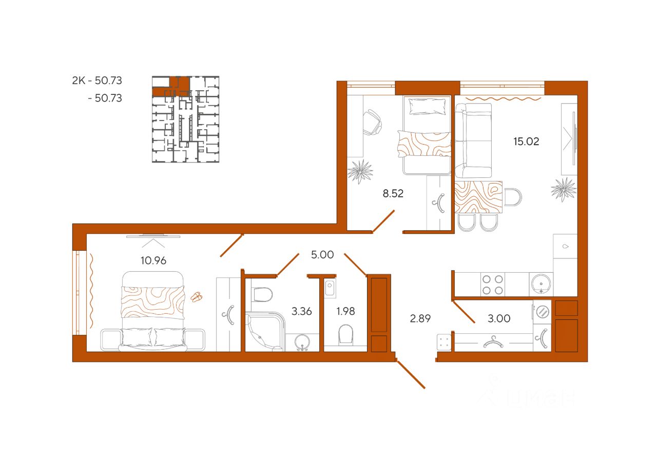 Продаётся 2-комнатная квартира в строящемся доме (Корпус 1), срок сдачи: I-кв. 2029, общей площадью 50.73 кв.м., на 1 этаже. Новый жилой комплекс "Терра" от застройщика "АВТОР НОВОЙ ЖИЗНИ" расположен по адресу Пензенская область, Город Пенза, Улица Кижеватова.