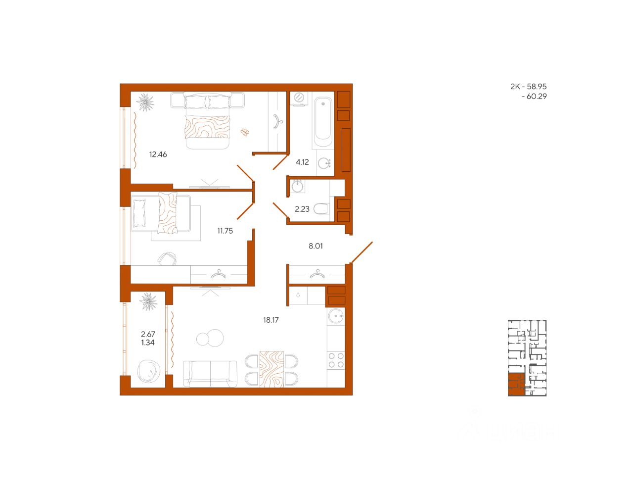 Продаётся 2-комнатная квартира в строящемся доме (Корпус 1), срок сдачи: I-кв. 2029, общей площадью 60.29 кв.м., на 1 этаже. Новый жилой комплекс "Терра" от застройщика "АВТОР НОВОЙ ЖИЗНИ" расположен по адресу Пензенская область, Город Пенза, Улица Кижеватова.