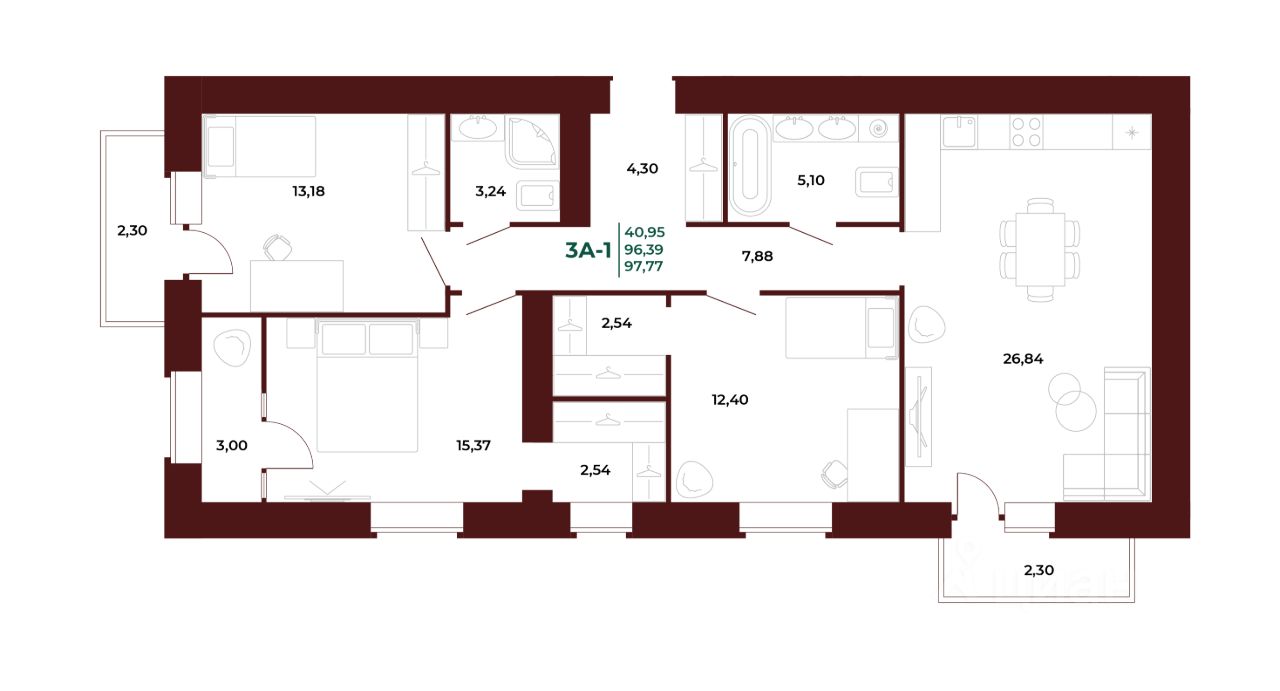 Продается 3-комн. квартира, 98,49 м²