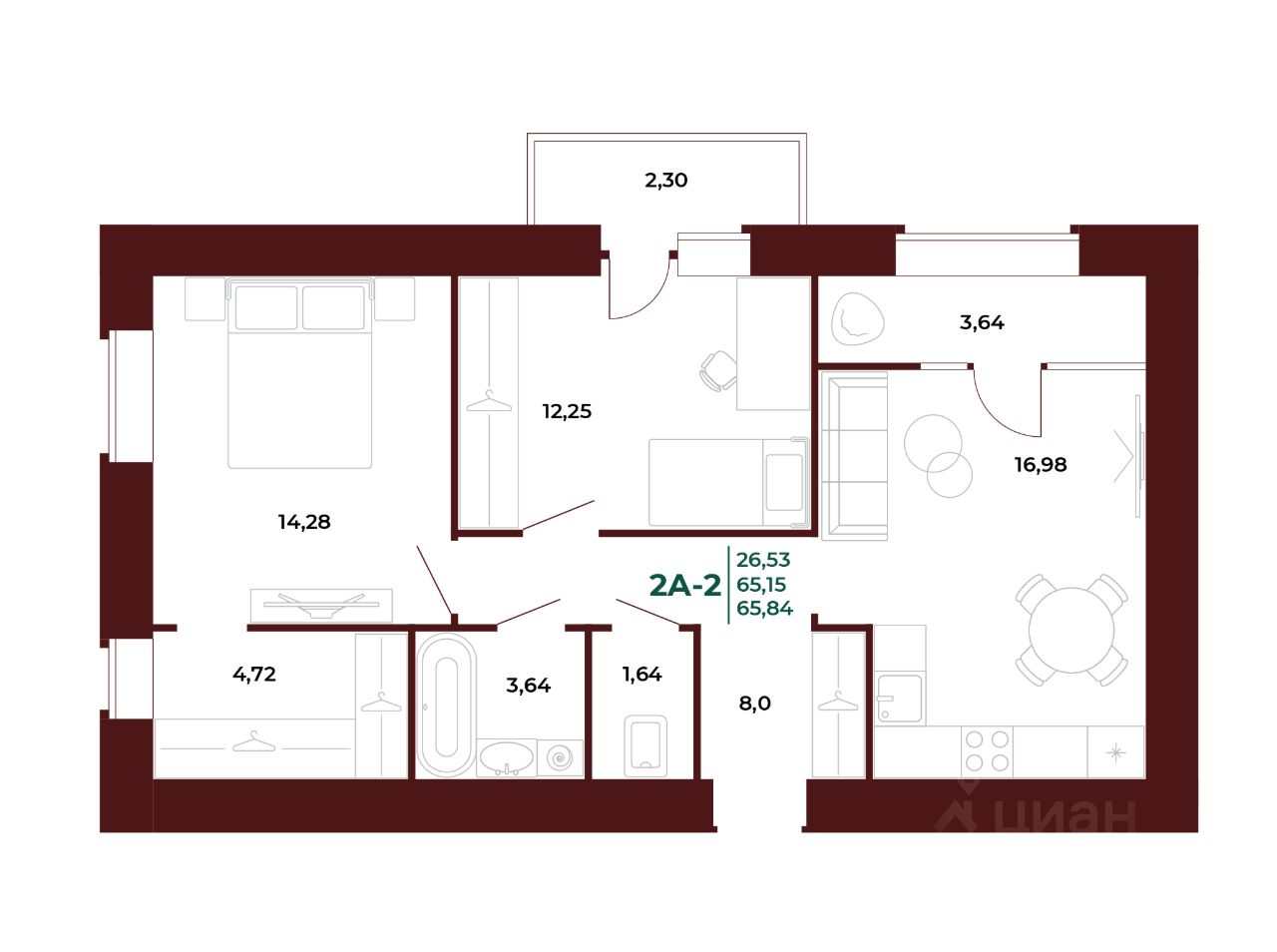 Продаётся 2-комнатная квартира в строящемся доме (2 этап), срок сдачи: IV-кв. 2027, общей площадью 66.52 кв.м., на 6 этаже. Новый жилой комплекс "АРБЕРИ" от застройщика "ГК Автор" расположен по адресу Пенза, проспект Строителей.