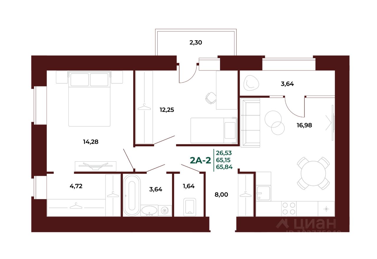 Продаётся 2-комнатная квартира в строящемся доме (2 этап), срок сдачи: IV-кв. 2027, общей площадью 66.52 кв.м., на 9 этаже. Новый жилой комплекс "АРБЕРИ" от застройщика "ГК Автор" расположен по адресу Пенза, проспект Строителей.