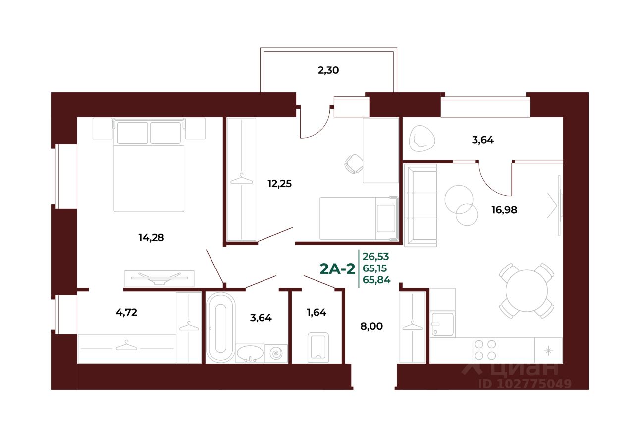 Общая площадь68,84 м²