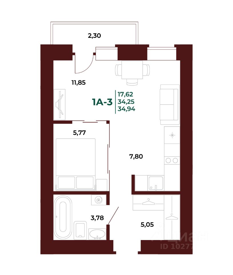 Продаётся 1-комнатная квартира в строящемся доме (2 этап), срок сдачи: IV-кв. 2027, общей площадью 34.87 кв.м., на 13 этаже. Новый жилой комплекс "АРБЕРИ" от застройщика "ГК Автор" расположен по адресу Пенза, проспект Строителей.