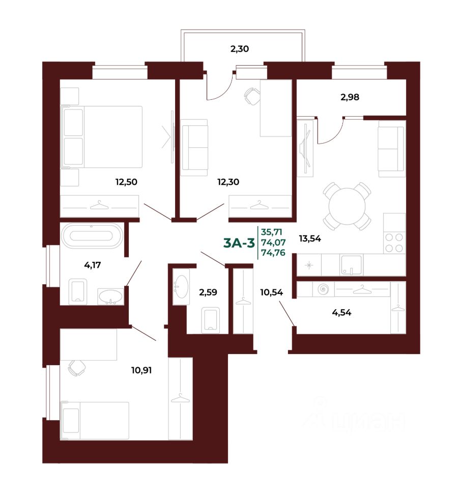 Продаётся 3-комнатная квартира в строящемся доме (2 этап), срок сдачи: IV-кв. 2027, общей площадью 74.53 кв.м., на 14 этаже. Новый жилой комплекс "АРБЕРИ" от застройщика "ГК Автор" расположен по адресу Пенза, проспект Строителей.