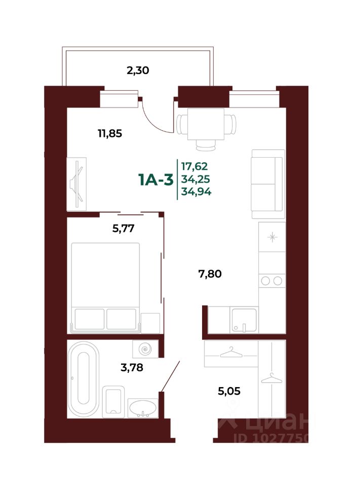 Продаётся 1-комнатная квартира в строящемся доме (2 этап), срок сдачи: IV-кв. 2027, общей площадью 34.87 кв.м., на 14 этаже. Новый жилой комплекс "АРБЕРИ" от застройщика "ГК Автор" расположен по адресу Пенза, проспект Строителей.