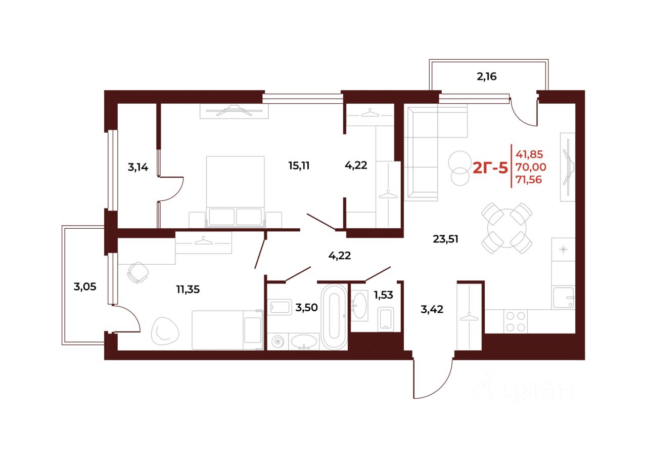Продаётся 2-комнатная квартира в строящемся доме (1 этап), срок сдачи: III-кв. 2027, общей площадью 71.56 кв.м., на 14 этаже. Новый жилой комплекс "АРБЕРИ" от застройщика "ГК Автор" расположен по адресу Пенза, проспект Строителей.