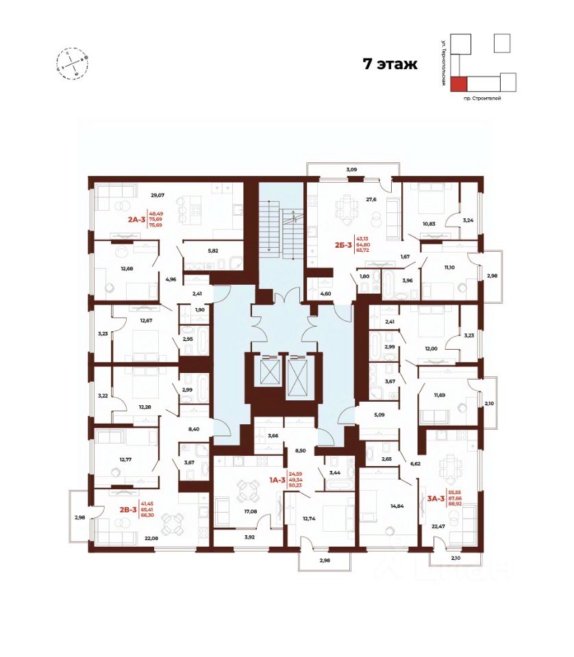 Продаётся 2-комнатная квартира в строящемся доме (1 этап), срок сдачи: III-кв. 2027, общей площадью 75.69 кв.м., на 7 этаже. Новый жилой комплекс "АРБЕРИ" от застройщика "ГК Автор" расположен по адресу Пенза, проспект Строителей.