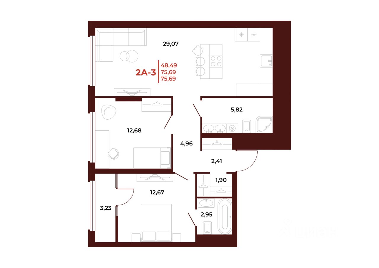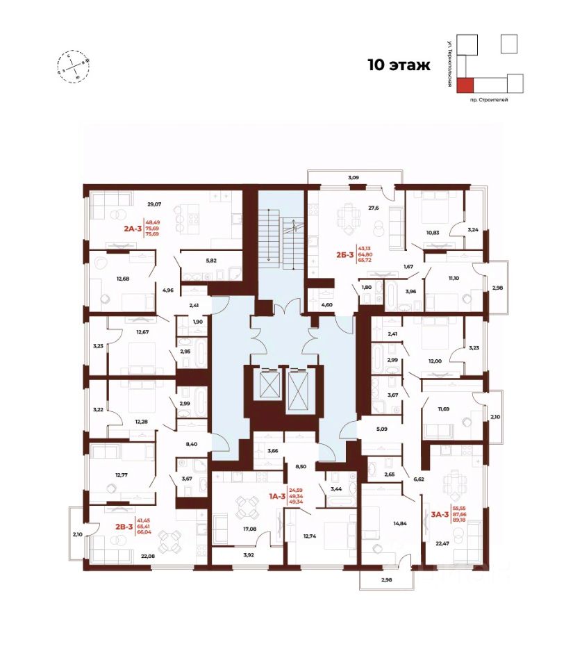 Продаётся 2-комнатная квартира в строящемся доме (1 этап), срок сдачи: III-кв. 2027, общей площадью 75.69 кв.м., на 10 этаже. Новый жилой комплекс "АРБЕРИ" от застройщика "ГК Автор" расположен по адресу Пенза, проспект Строителей.