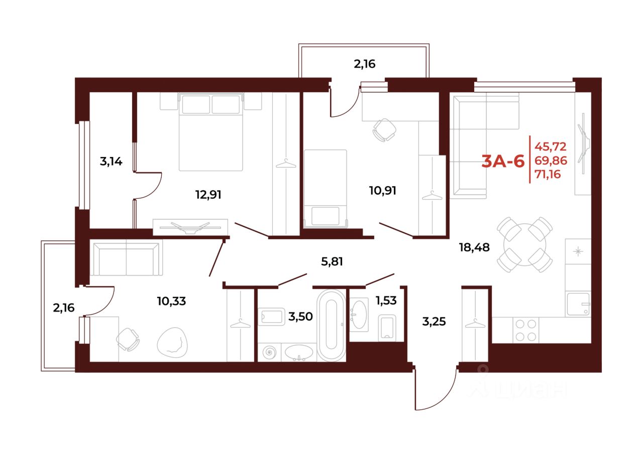 71,16 м²