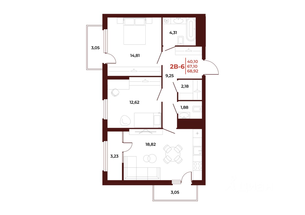 Продаётся 2-комнатная квартира в строящемся доме (1 этап), срок сдачи: III-кв. 2027, общей площадью 68.92 кв.м., на 10 этаже. Новый жилой комплекс "АРБЕРИ" от застройщика "ГК Автор" расположен по адресу Пенза, проспект Строителей.