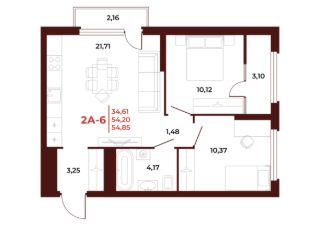 Общая площадь54,85 м²