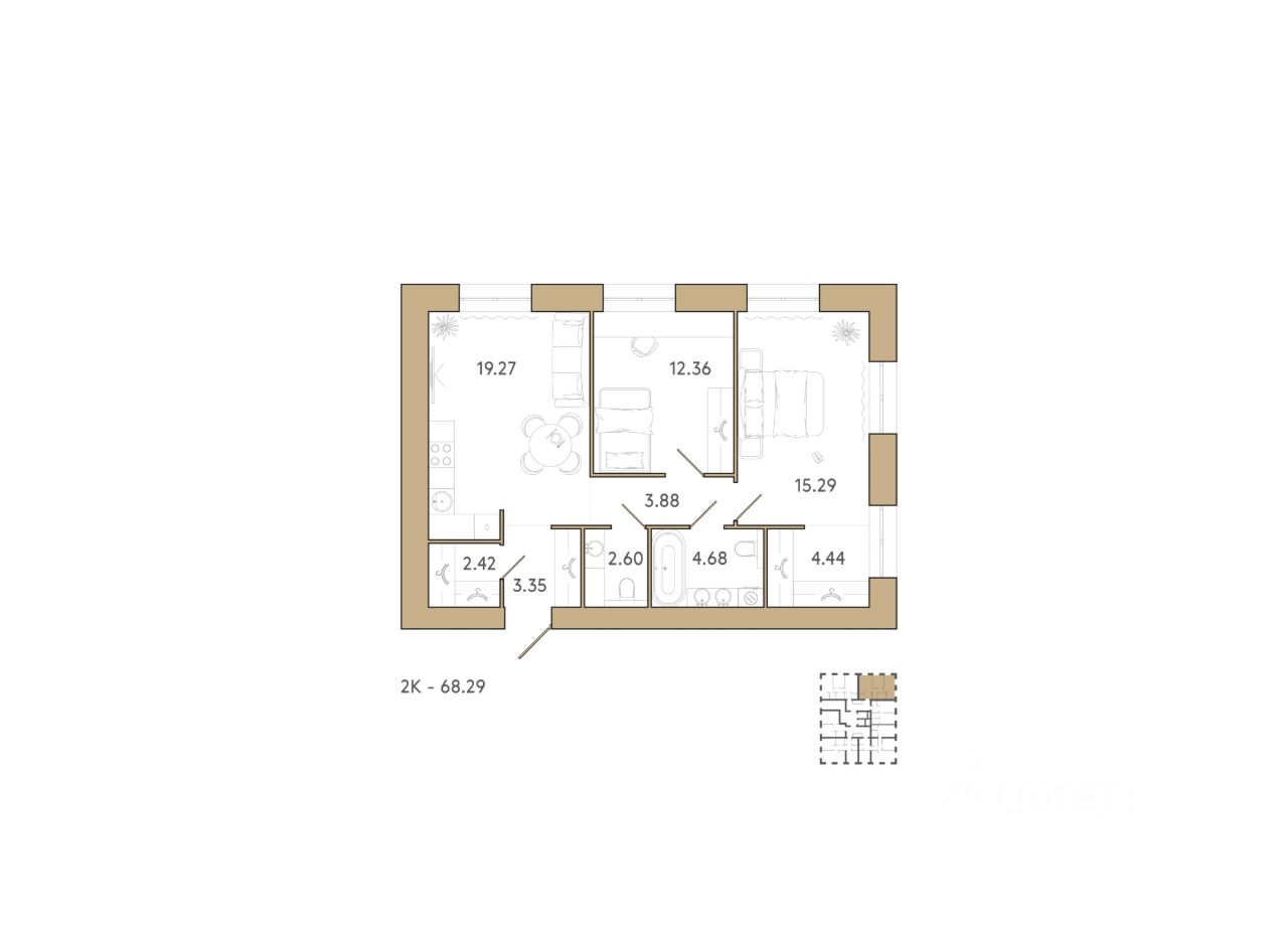 Продаётся 2 комнатная квартира 75 в жилом комплексе "АКАДЕМИЯ" (2й проезд Свердлова, 27) у зоопарка. Квартира расположена на 2 этаже, общая площадь 68,29 м2.