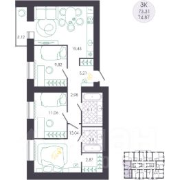 Продаётся 3-комнатная квартира в строящемся доме (Корпус 1), срок сдачи: IV-кв. 2027, общей площадью 74.87 кв.м., на 5 этаже. Новый жилой комплекс "Доброе" от застройщика "ГК Автор" расположен по адресу Россия, Пенза, Колышлейская улица, 7.