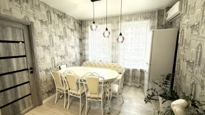В квартире остается кухонный гарнитур со встроенной техникой: варочная панель, духовой шкаф, микроволновка, вытяжка, посудомойка; встроенные шкафы, 2 кондиционера. Остальная мебель по договоренности.