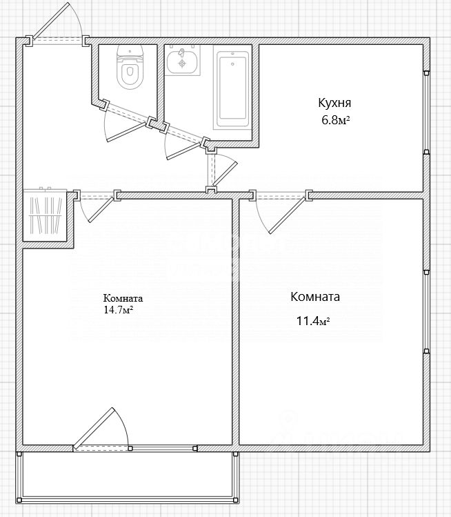 Общая площадь - 39,6 кв.м