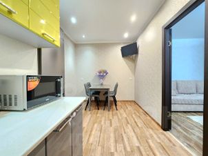 Два лифта ( грузовой и пассажирский). Квартира расположена на 13 м этаже из 16 ти . ОЧЕНЬ ТЕПЛАЯ И УЮТНАЯ! На полу дорогой надежный линолеум. Новая входная металлическая дверь. По всей квартире натяжные потолки, современные люстры. Просторный санузел совмещен в современном кафеле. Максимально удобная планировка с просторной кухней, где можно поставить диван. Светлая просторная комната с выходом на утепленную лоджию. На лоджии можно оборудовать зону отдыха и любоваться прекрасным видом в даль уходящей реки.