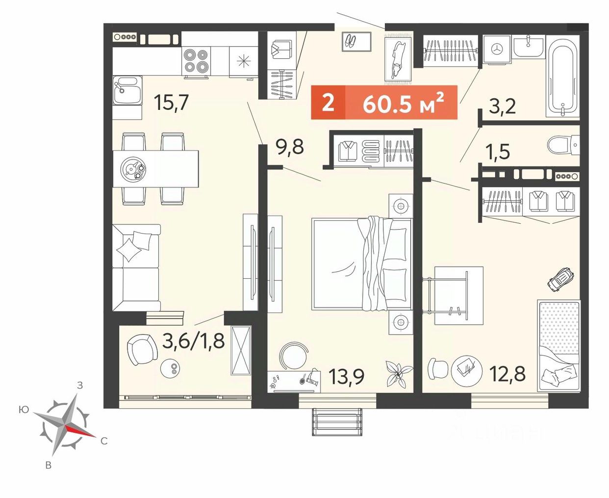 Продаётся 2-комнатная квартира в строящемся доме (2 этап ), срок сдачи: III-кв. 2026, общей площадью 61 кв.м., на 2 этаже. ЖК "Новин в Нижнем Ломове" - квартал 5-этажных домов, объединенных уютными зелеными дворами. Проект сочетает рациональный подход к благоустройству и современную архитектуру, формируя комфортную среду для жизни, творчества и развития детей.
